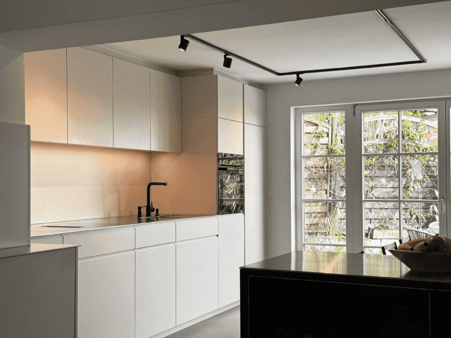 Wohnungsprojekt von fineconnect in 1170 Wien, Blick in die Küche, schwarze und weiße Optik